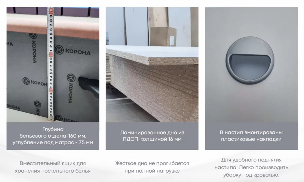 • В бельевом отделе нет никаких ограничений по весу хранения предметов - настил кладется на пол