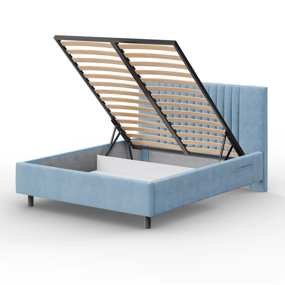 Достоинства данной кровати — это актуальный дизайн с вертикальными полосами, который отлично впишется в современный интерьер. Наличие ножек обеспечивает беспрепятственную работу робота-пылесоса. Модель кровати также оснащена удобными карманами на царгах с обеих сторон, обеспечивая оптимальное сочетание функциональности и доступной стоимости.