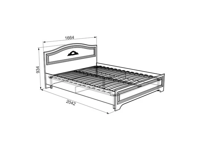 Состоит из: каркаса, спинки из ЛДСП с резным рисунком, ортопедического основания. Матрас приобретается отдельно.