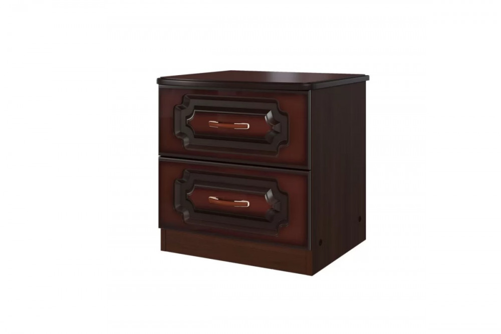 Глубина-430 мм Ширина-455 мм Высота-460 мм Срок службы-7 лет Гарантийный срок-18 месяцев Монтаж-Требует сборки Фрезеровка фасада-Да Материал фасада-МДФ 16 мм Материал корпуса-МДФ 16 мм, ЛДСП 16 мм Вариант отделки фасада-Отделка лаком, Тонировка Фурнитура-Шариковые направляющие полного выдвижения Коллекция-Спальня «Лакированный орех» Цвет корпуса-Орех шоколадный Цвет фасада-Орех лак Количество выдвижных ящиков-2 шт Корпус с древесной или текстурной поверхностью-Да