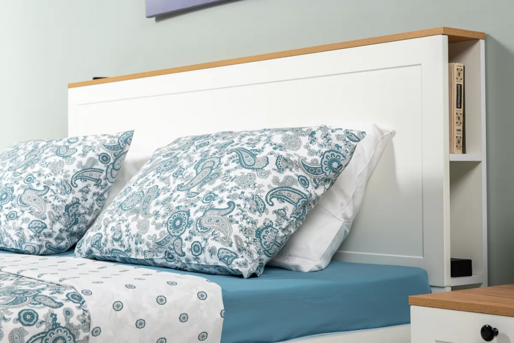Доступна в двух цветовых решениях – белый/графит в сочетании с теплым древесным декором.