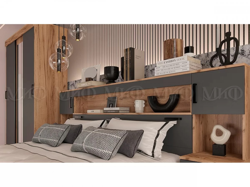 Спальный гарнитур Басямиф, графит/дуб крафт в Муравленко