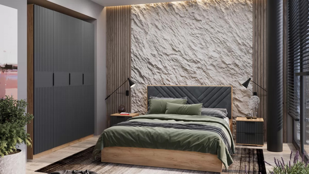 Спальный гарнитур «Хилтон» №2 Дуб Крафт золотой, Графит матовый в Муравленко