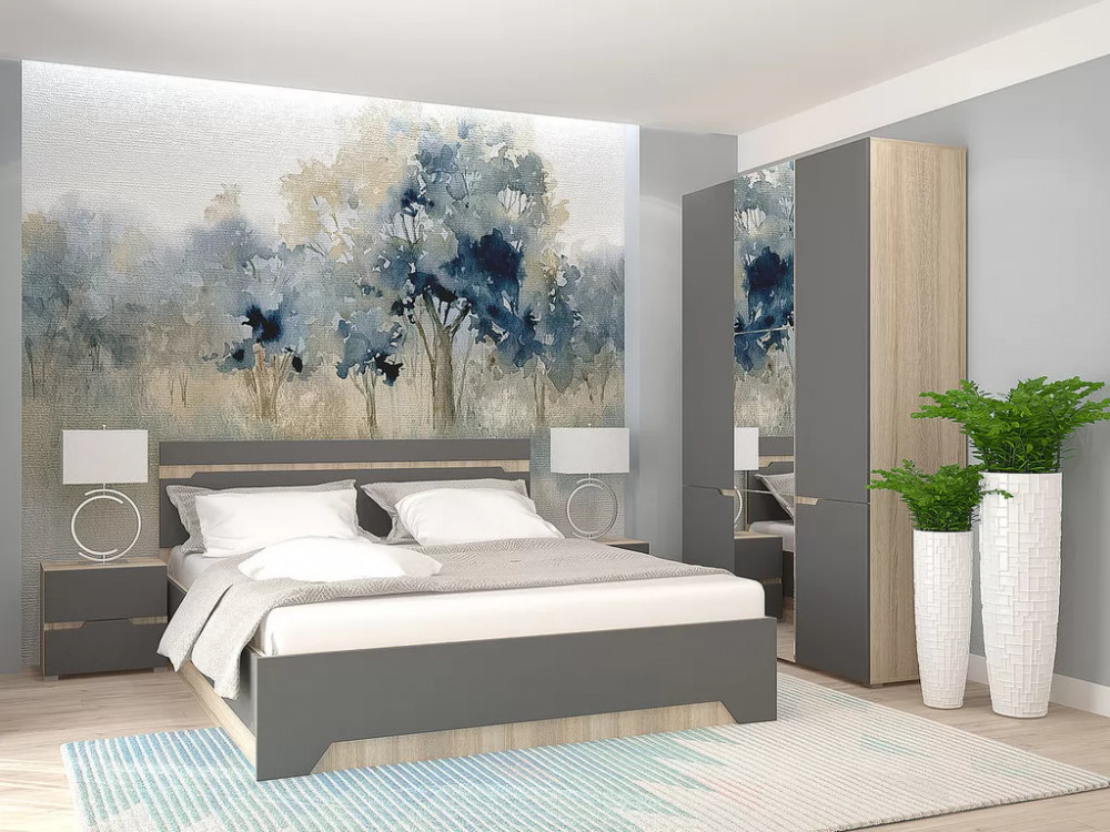 Спальный гарнитур с 3-х створчатым шкафом Анталия Сонома-Графит софт в Муравленко