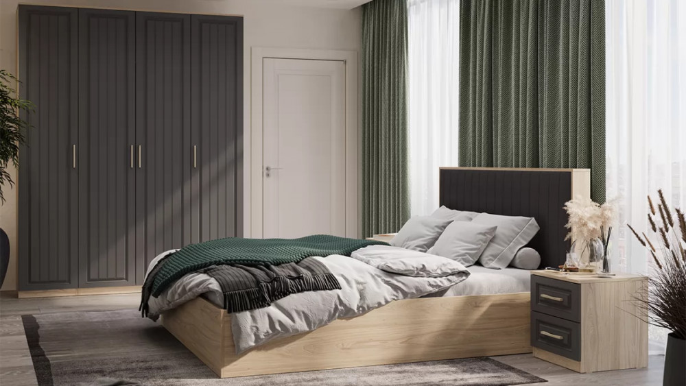Спальный гарнитур «Сэнди» №4 Вяз благородный, Серый вулкан, Велюр Графит в Муравленко
