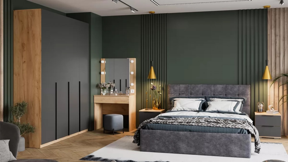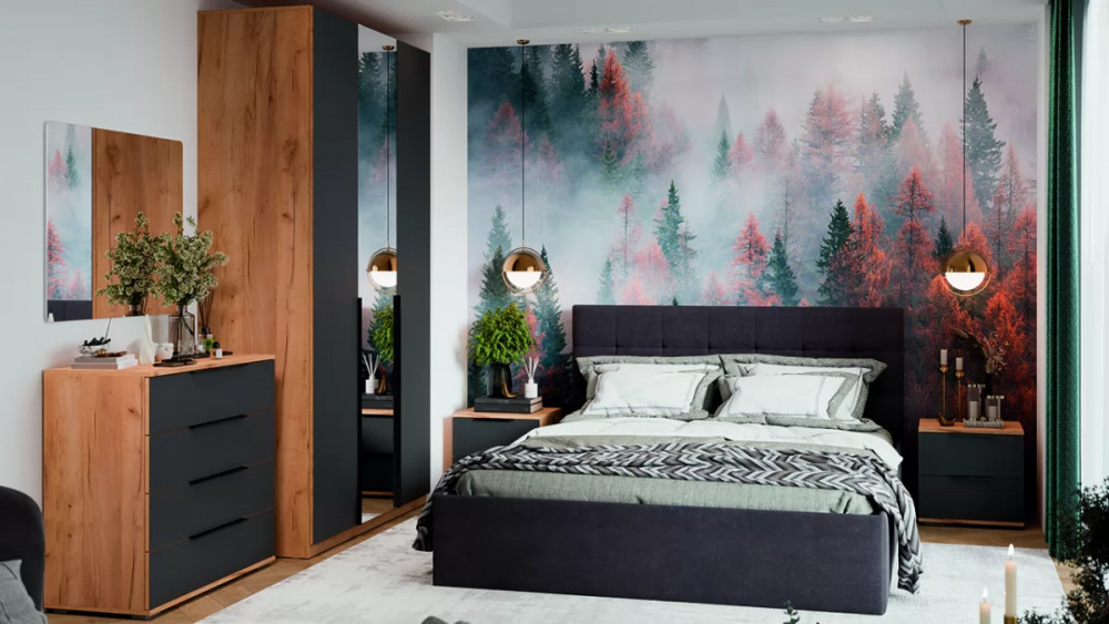 Спальня «Джоли» Дуб Крафт золотой, Графит матовый в Муравленко