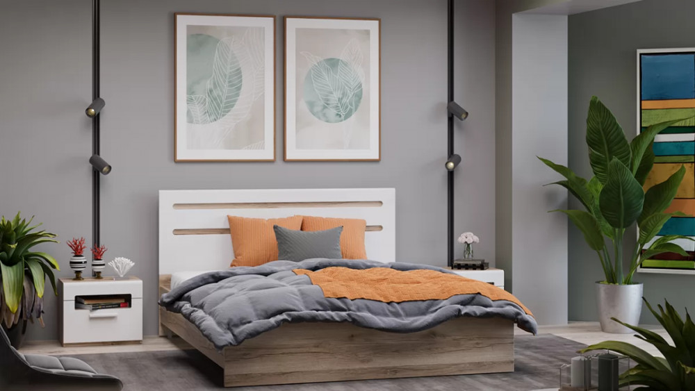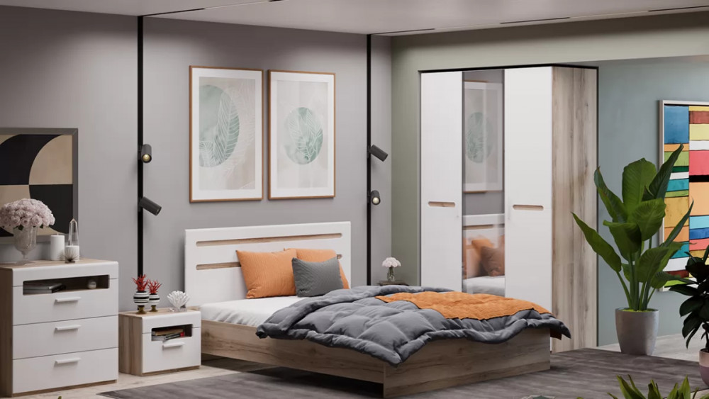 Спальня «Фьюжн» Дуб Делано, Белый глянец в Муравленко