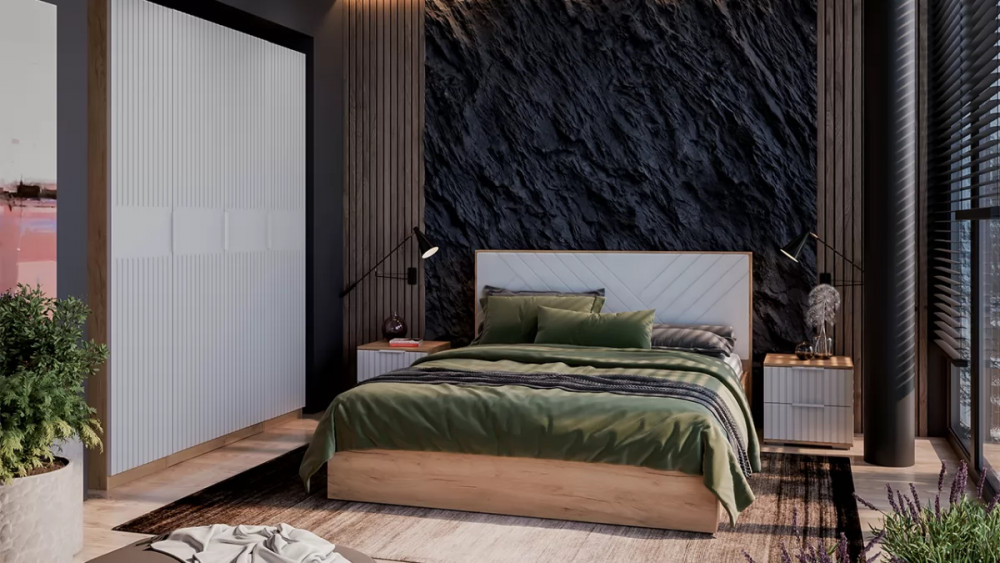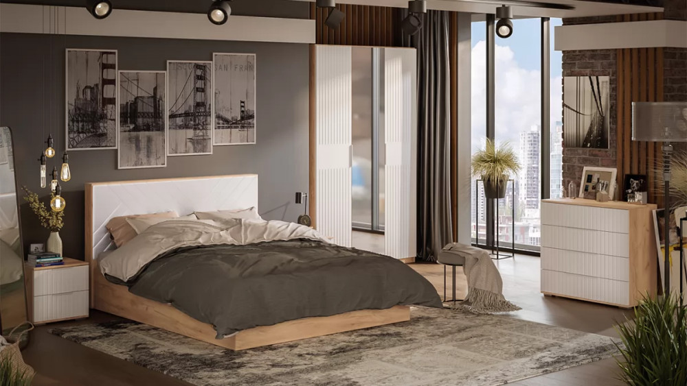 Спальня «Хилтон» Дуб Крафт золотой, Белый матовый в Муравленко