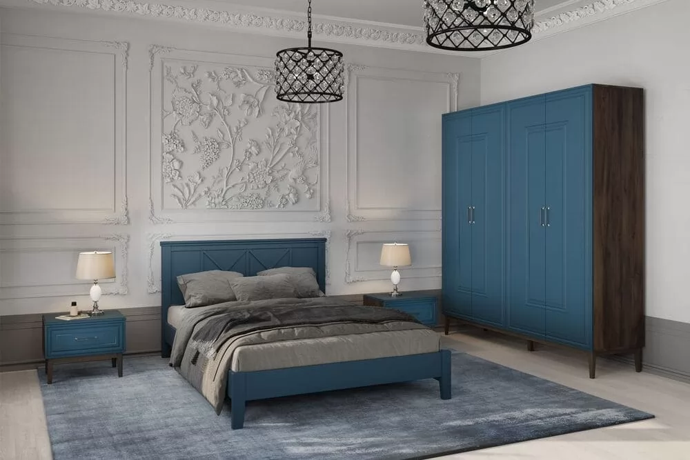 Фрезеровка фасада:ДаЦвет фасада: Таксус / Лак СапфировыйЦвет корпуса: Таксус / Лак СапфировыйФурнитура: Штанга для одежды, шариковые направляющие полного выдвиженияСрок службы: 7 летГарантийный срок: 18 месяцевМонтаж: Требует сборкиОпора кровати: Массив