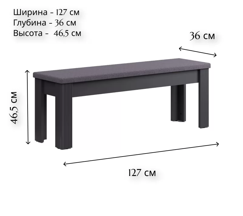 Корпус из ЛДСП дополнен мягким текстильным сидением. Скамья обладает простым и функциональным дизайном, который позволяет оптимально использовать пространство и сделать пребывание на кухне или прихожей комфортным.